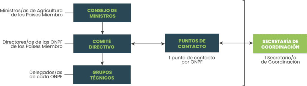 El Consejo de Ministros, integrado por los Ministros de Agricultura, es el órgano máximo de la organización y se encarga de fijar las políticas, estrategias y prioridades del COSAVE. El Comité Directivo, por su parte, está integrado por los Directores o Jefes de las organizaciones nacionales de protección fitosanitaria y son quienes definen los programas, proyectos y todas las actividades a realizar por el COSAVE, considerando aquellos temas de interés común.